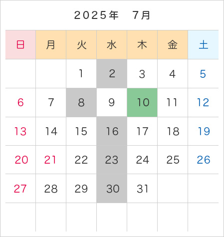 | 7月 | 4/1(月)~ 4/20(土) | 5/10(金)~ | |||