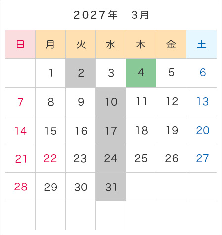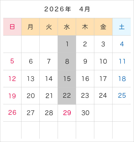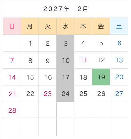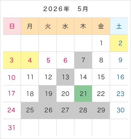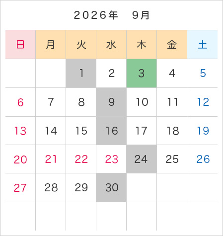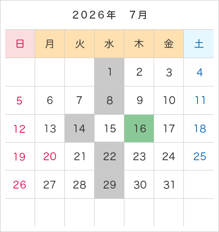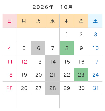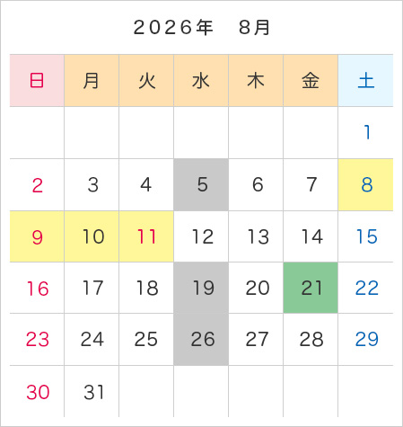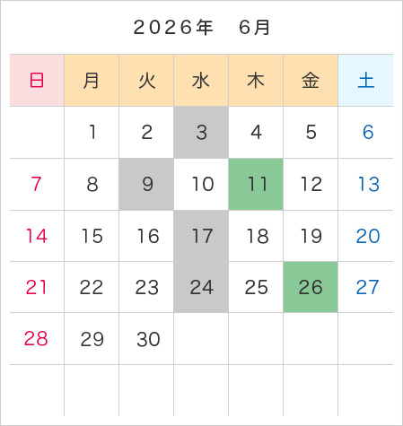 年間カレンダー・予約受付日程