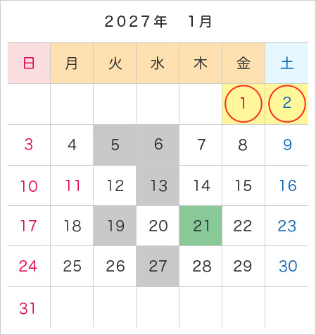 ※4 期間:2027/1/1(金)~1/2(土)